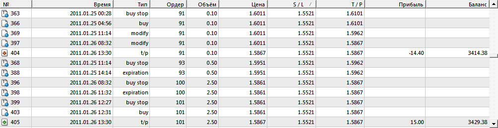 Базовый ордер №91 открылся 25.01.2011 в 00.28 в этот же день, в 04.56 он
