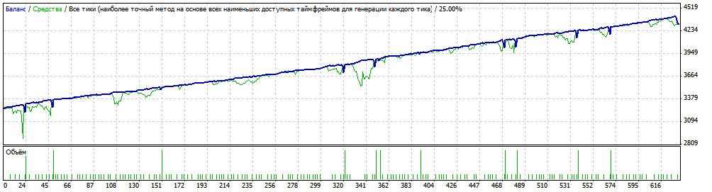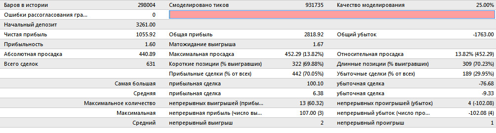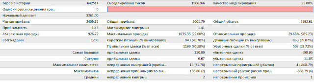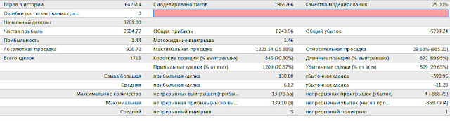 Затем, провёл аналогичный тест советника, в котором время «жизни» усредняющих ордеров было равно трём часам. Почему именно трём, не знаю, просто так захотелось.