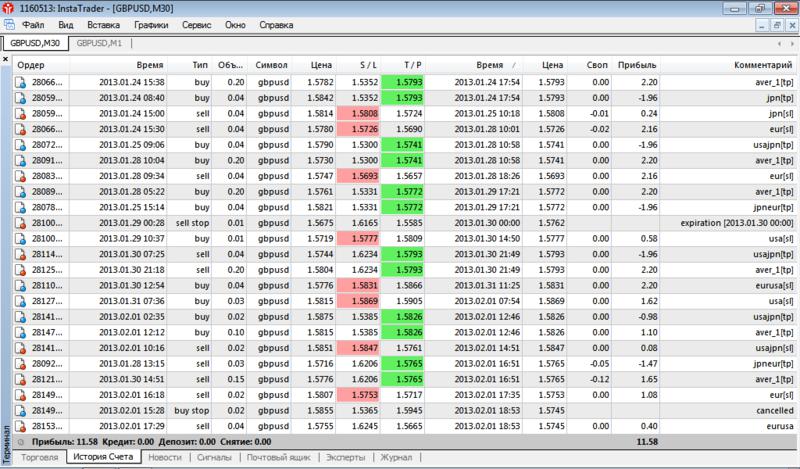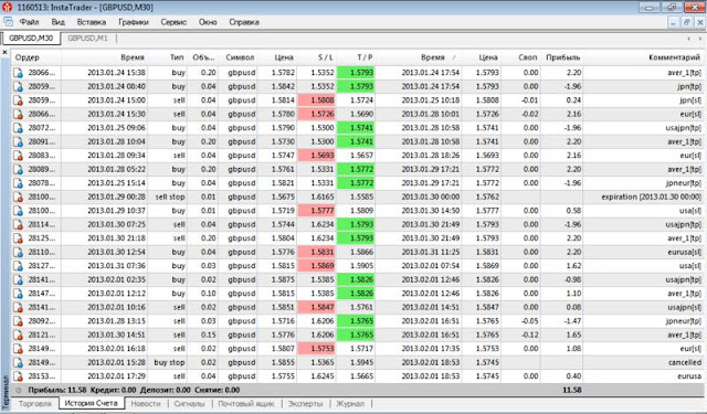 Описанный способ был протестирован на инструменте GBPUSD за 2013 год. Счет